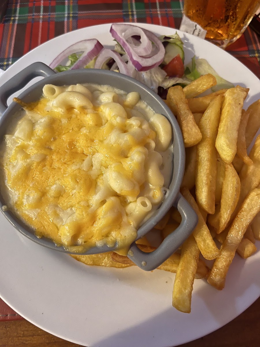 Macaroni Cheese with Chips and Salad: The ultimate comfort food combo, ideal for those seeking something hearty and filling.